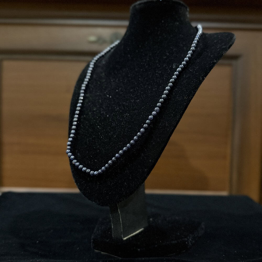 Синій авантюрин — камінь, який нагадує нічне зоряне небо. Це витончене намисто привнесе у ваш образ магію та загадковість. Легкий блиск каменю робить прикрасу універсальною для денного та вечірнього образів.