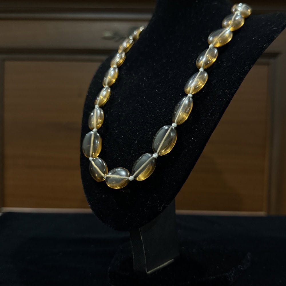 Прикраса з витончених прозорих намистин цитрину овальної форми, що мають теплий золотистий відтінок.